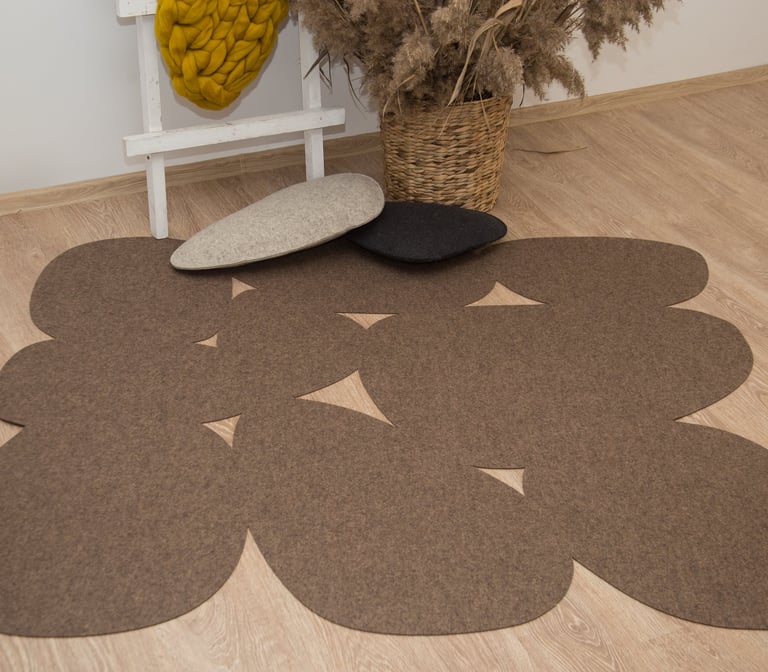 Merino wool felt is a premium material for interior design and rug production. Crafted from fine natural wool fibers, it is breathable, resilient, and long-lasting. Its natural structure allows air circulation and moisture regulation, enhancing both comfort and durability. This makes merino wool felt an excellent choice for high-quality, timeless interiors.