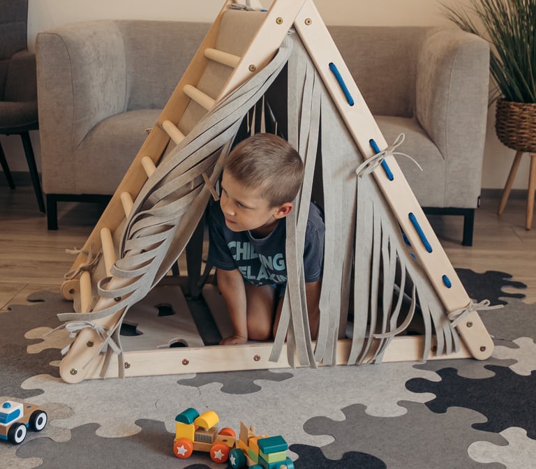 Wall panels are made from combined felt that is both stiff and soft at the same time to provide easy and pleasant play.